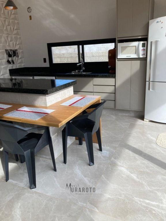 Imóvel excelente contando com terreno de 1.000m² sendo aproximadamente 210m². São 3 amplos dormitórios suítes, ampla sala de estar, sala de jantar e cozinha estilo americana sendo ambientes integrados. Lavanderia, banheiro para área externa, lavabo.