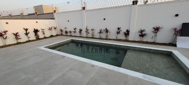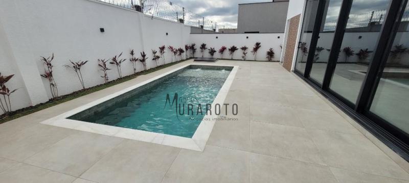 Lindo sobrado com 5 suítes com closet sendo 1 delas no pavimento térreo em piso porcelanato 1,20x1,20 e suítes do pavimento superior em piso de madeira maciça. Ampla sala de estar e jantar com pé direito duplo com piso porcelanato acetinado 1,20x1,20, Home Theater, lavabo, cozinha gourmet, despensa, área de serviço, despejo, banheiro externo, com uma bela piscina e garagem para 6 carros sendo 3 cobertas.